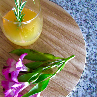 To begin I made my own rosemary simple syrup . Don't worry its called "SIMPLE" for a reason and it's a perfect match for this cocktail's citrus blend. So don't chicken out and skip this step.